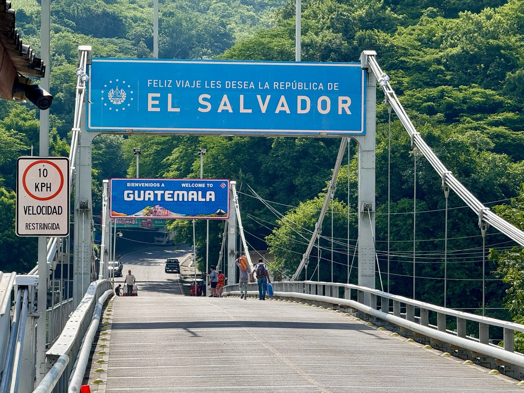 Looking back from whence I came -- the final border crossing. Helpful officers on both sides.