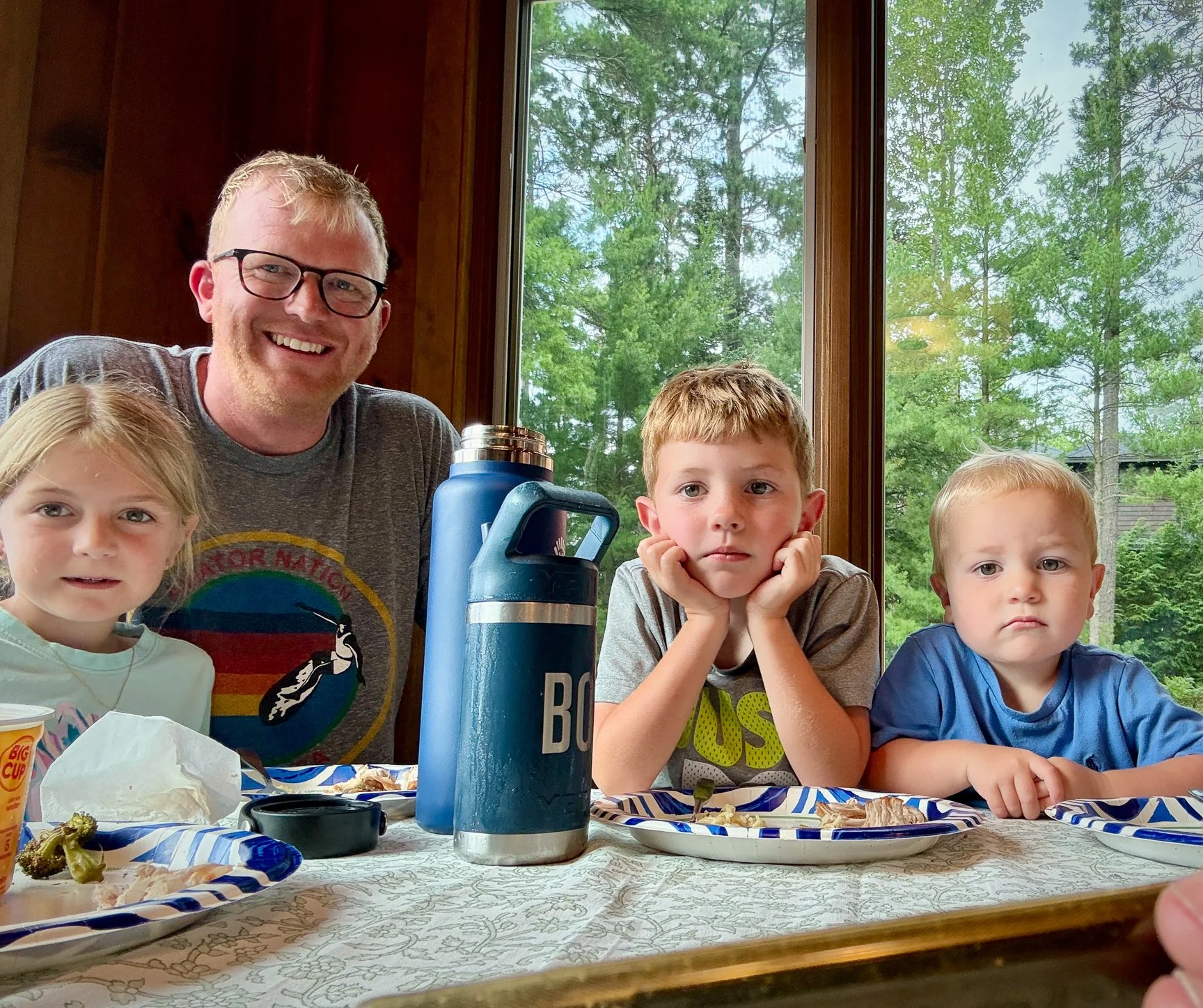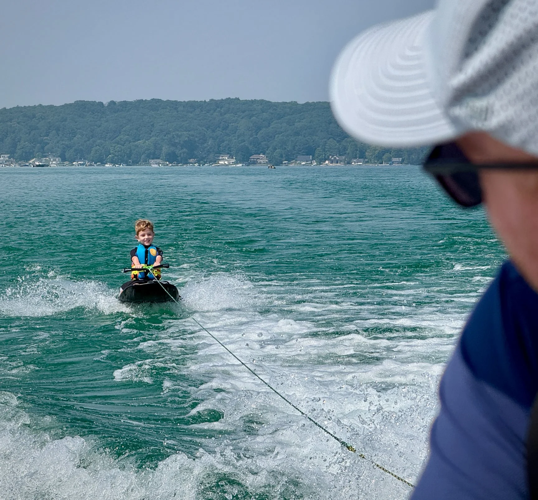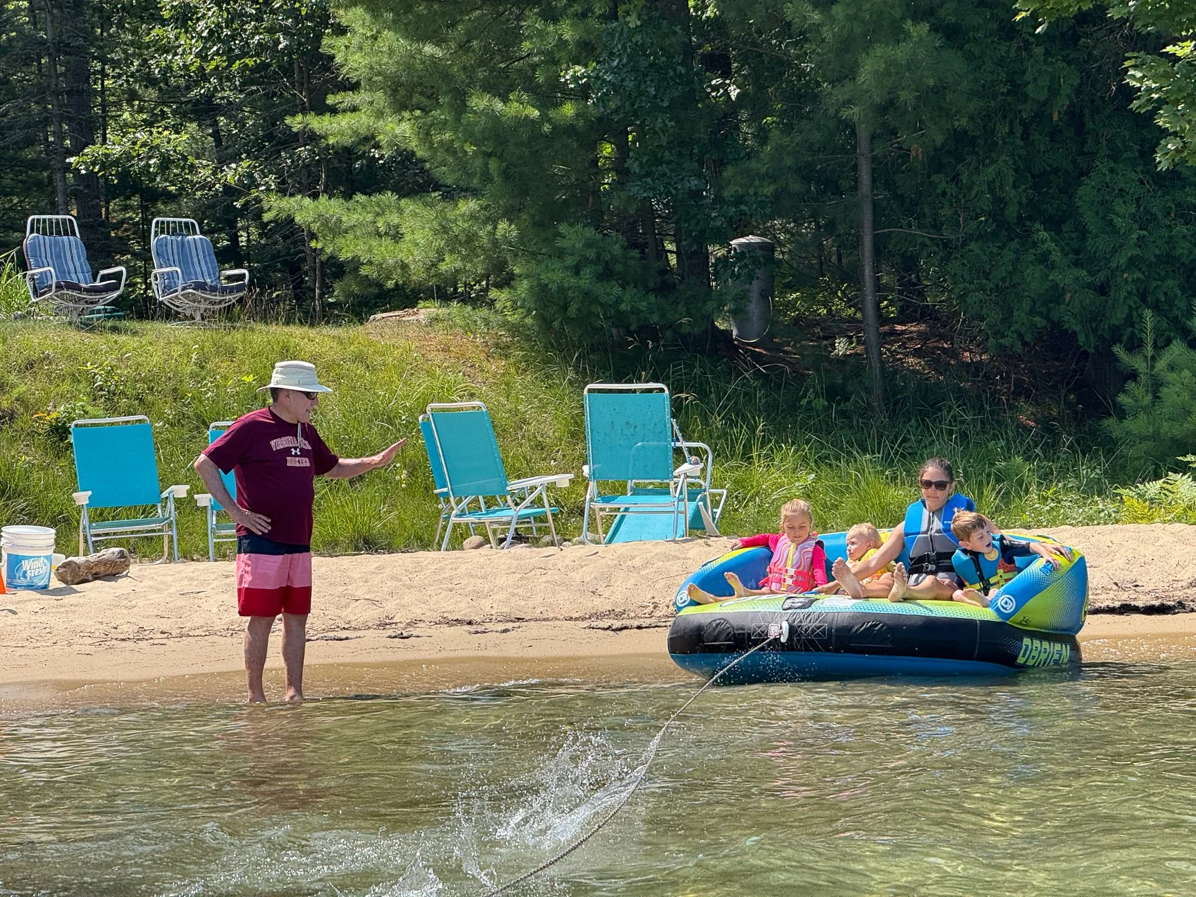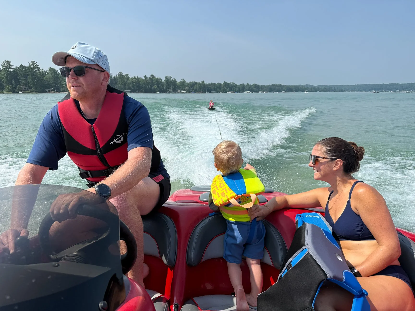 Expert seaman! Craig was practically born and raised on boats on this lake ... every summer. He and Lauren were married on the beach there.